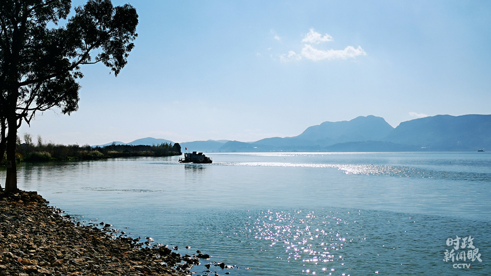 △日光下的滇池,波光粼粼。(总台央视记者张晓鹏拍摄)