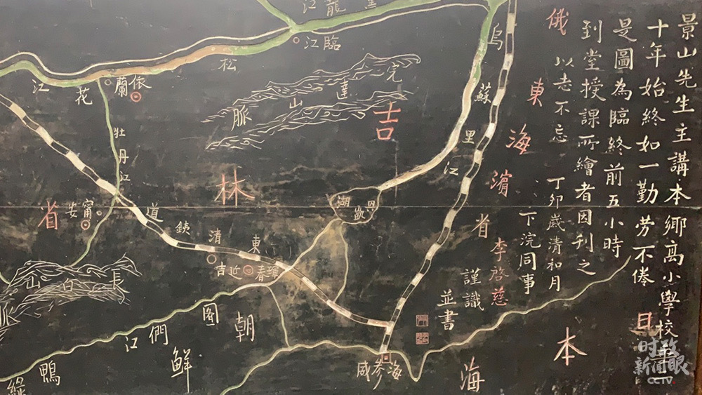 △和顺图书馆珍藏了一块珍贵的黑板板书。当地教育家李景山在讲授国耻一课时,义愤填膺,当堂病倒。这堂课成了景山先生的“最后一课”。(总台央视记者米鹤拍摄)