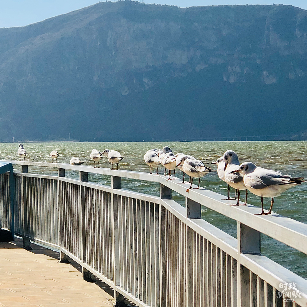 △海鸥临时在滇池眺望台休息,一片宁静。(总台央视记者彭汉明拍摄)
