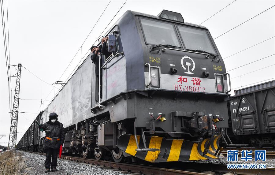 2月14日,满载1000吨防疫和生活物资的货运列车从吉林长春出发前往湖北武汉。 新华社记者 许畅 摄