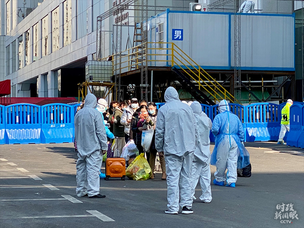 △2月20日,武汉江汉方舱医院治愈出院人数破百,创造了单日出院人数最大值。(总台央视记者韩冰拍摄)
