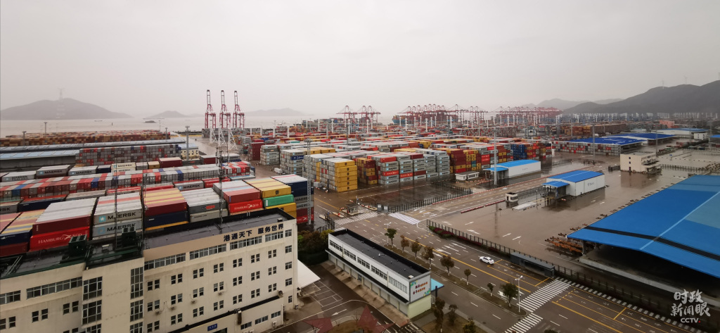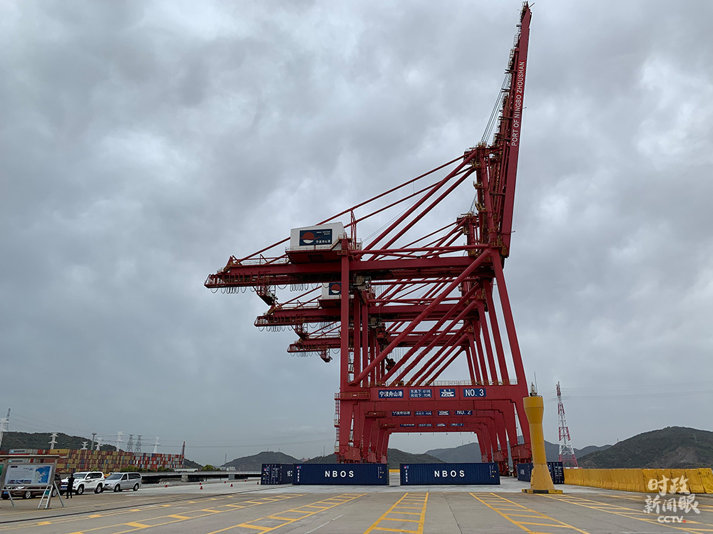 习近平此次考察的穿山港区集装箱码头,是继深圳盐田国际码头后全球第二大单体集装箱码头,码头岸线3410米。(总台央视记者李辉、段德文拍摄)