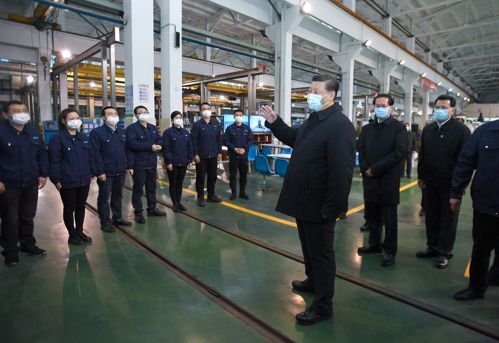 3月29日,习近平在宁波北仑大碶高端汽配模具园区了解企业复工复产情况。新华社记者 申宏 摄