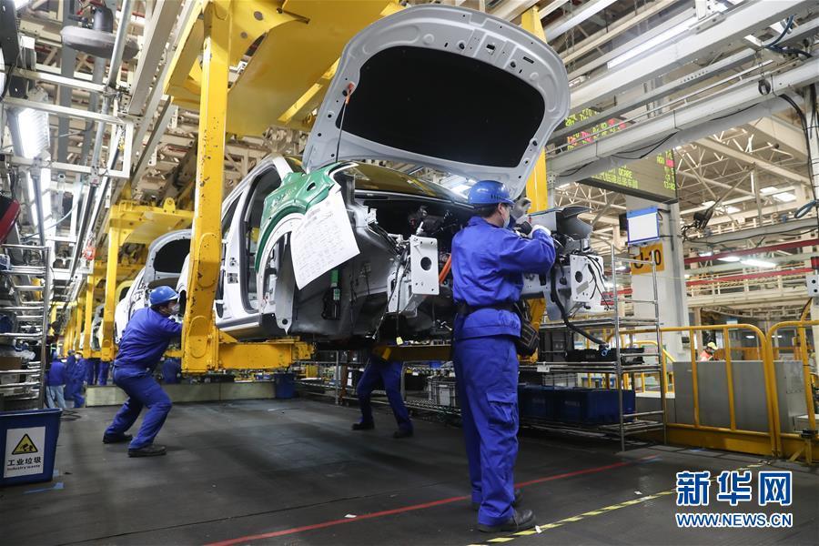 工人在上汽临港工厂总装车间生产线上作业(2月27日摄)。新华社 丁汀 摄