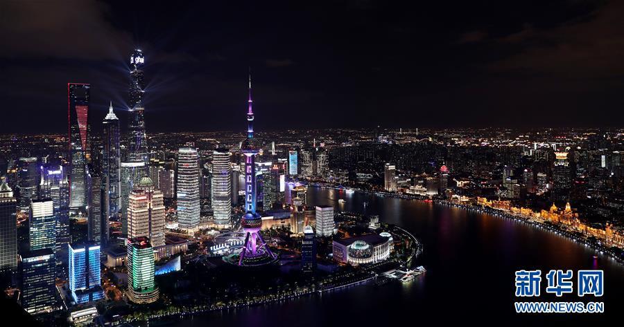 夜色中的上海浦东陆家嘴金融区(2018年11月1日摄)。新华社 方喆 摄