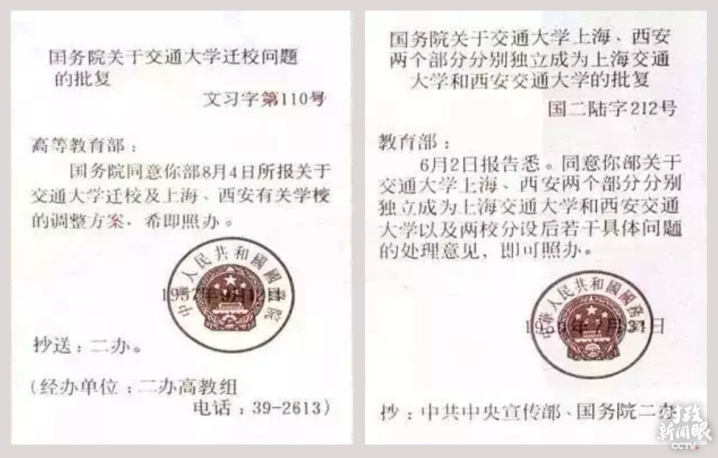 经过实地勘址、认真分析并报中央批准,交大的迁校方案后来做了调整:交通大学分设西安、上海两地。至1957年底,西安有教职工2585人、学生6881人,上海有教职工2300人、学生5078人。1959年,西安交通大学、上海交通大学定名,同时跻身全国重点大学。