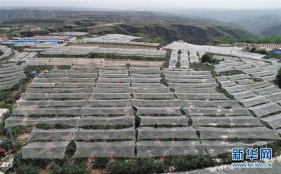 这是陕西省延安市延川县梁家河村山地苹果园(2018年5月24日摄,无人机照片)。新华社记者 邵瑞 摄