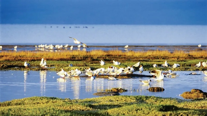 青海处在生态文明建设的最前沿。图为鸟类在青海省玉树州隆宝国家级自然保护区内自由嬉戏,这里是三江源自然保护区的核心地带,被誉为水鸟的天堂。青海《党的生活》杂志社供图