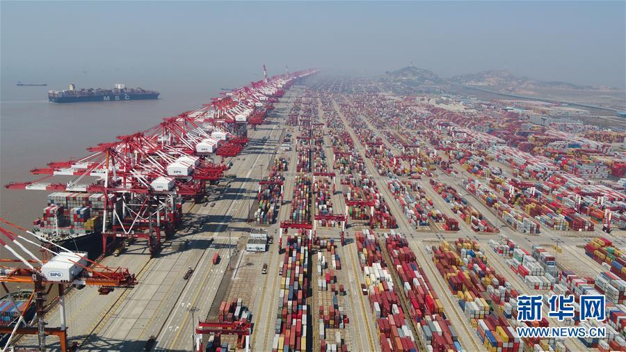 这是3月18日拍摄的上海洋山港集装箱码头(无人机照片)。 新华社记者 丁汀 摄