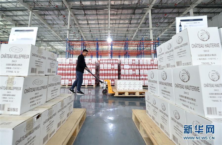 5月8日,在位于河北省邯郸市鸡泽县的青岛保税港区邯郸(鸡泽)功能区,工作人员在搬运货物。新华社记者 王晓 摄