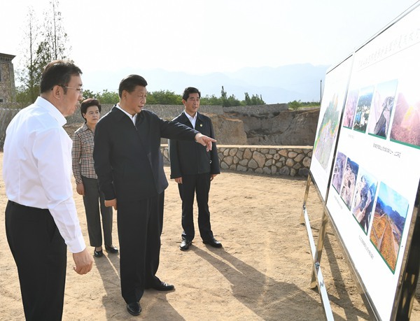 6月9日下午,习近平在银川市西夏区贺兰山东麓,听取贺兰山生态保护和环境综合整治情况汇报。新华社记者 谢环驰 摄
