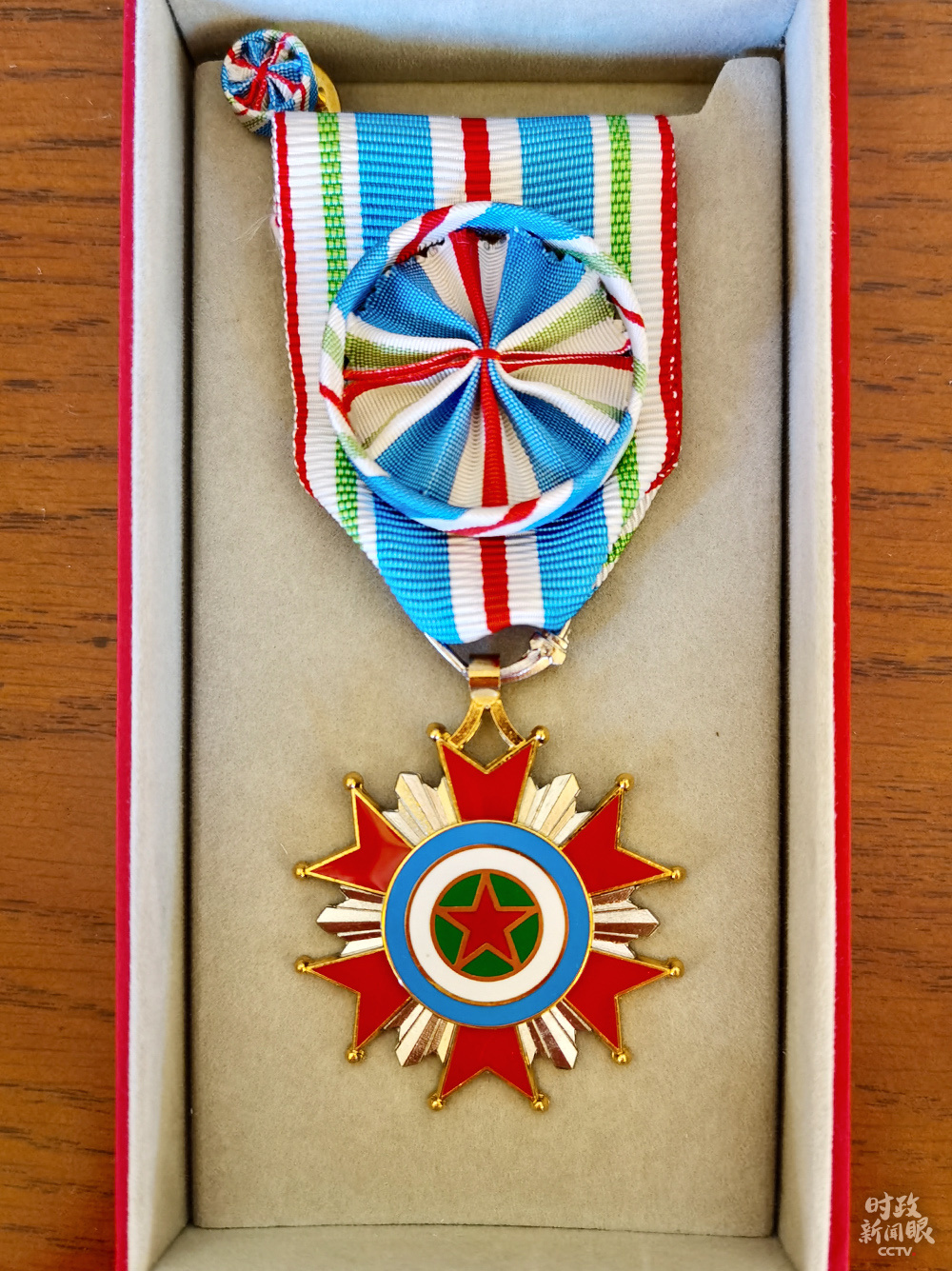 5月10日,吉布提共和国总理卡米勒向中国赴吉布提抗疫医疗专家组授勋。曾勇组长被授予“军官级独立日勋章”。(总台央视记者马培敏提供)