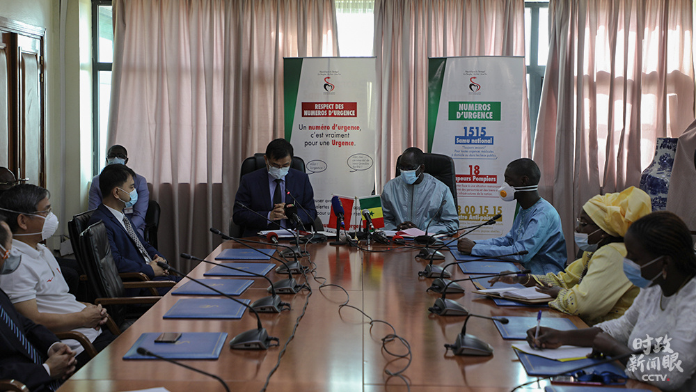 4月22日,塞内加尔举行中国援塞抗击新冠肺炎疫情物资交接仪式。这批抗疫物资分别由中国政府、两家在塞中资企业捐赠。(总台央视记者韩蓄提供)