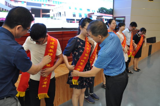 8月30日下午,2019-2020学年第一学期教职工开学大会在江南校区图书馆学术报告厅召开。大会的第二项内容是院领导为“网龙杯”2019年福建省职业院校教师教学能力比赛获奖教师举行绶带仪式。