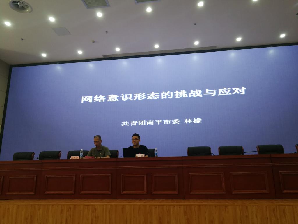 5月16日下午,南平团市委宣传部部长、福建省委网信办特聘网络评论专家林檬应邀来校做题为《网络意识形态的挑战与应对》的专题讲座。学生处、团委、现代教育技术中心全体工作人员、各系部学生科长兼团支部书记、全体专兼职辅导员、各系部网络管理员、全校新媒体组织的学生、各系学生代表等300余人参加会议。会议由现代教育技术中心主任郑金兴主持。