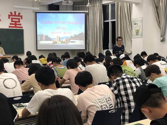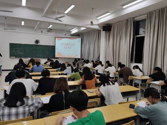 9月25日19点,《学生手册》应知应会在2个校区同时开展,江南校区各系在实训四教学楼、天麟校区在科教楼测试,2019级新生辅导员和辅导员助理监考。