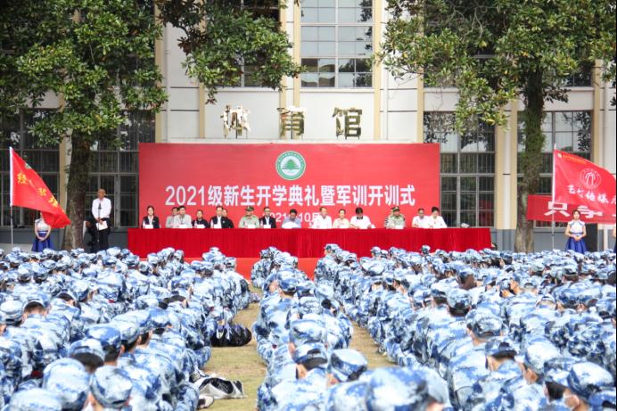 院党政领导,延平区委常委、武装部政委李武杰,延平区武装部副部长胡启武,延平区武装部和夏道镇武装部有关领导,学院各相关部门负责人,各系党总支书记、系主任、学生科长、2021级新生辅导员和2021级全体新生出席2021级新生开学典礼暨军训开训式。