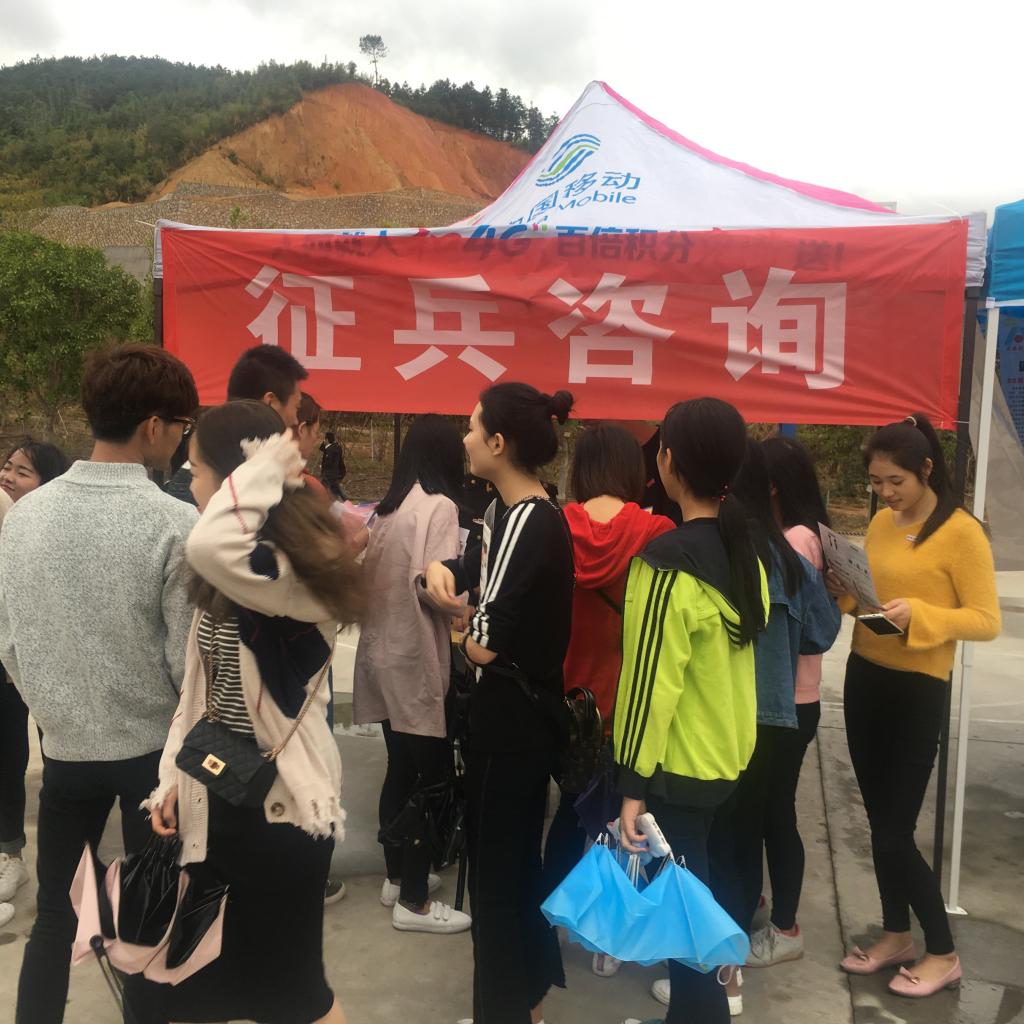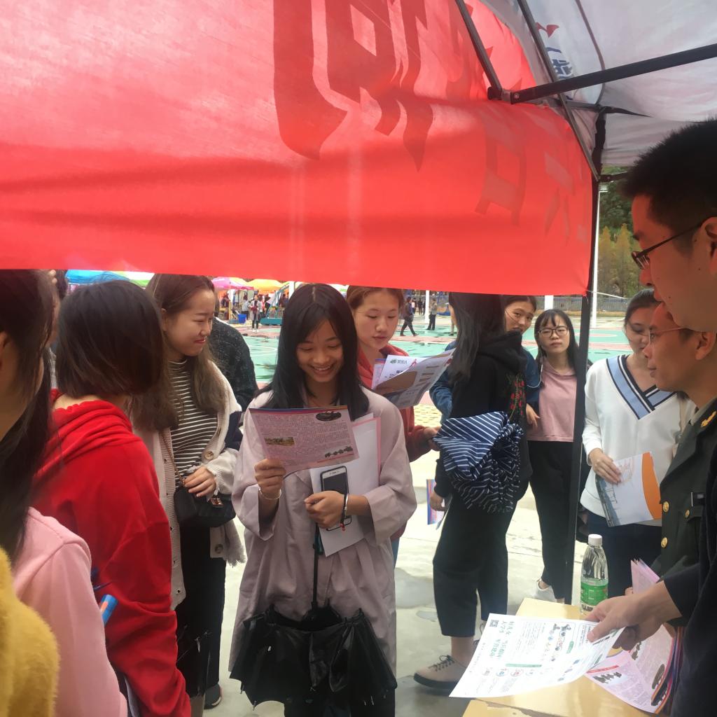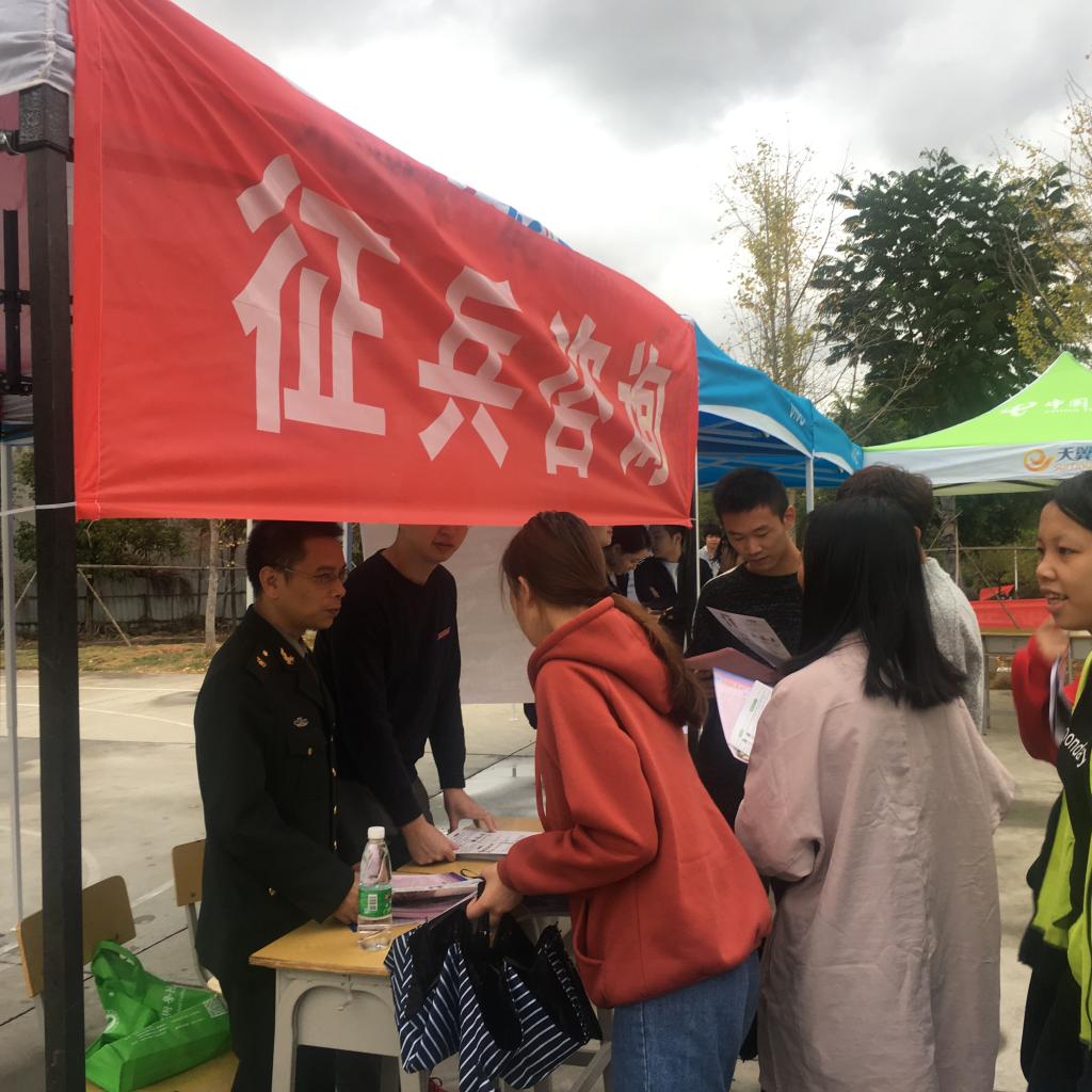 11月18日上午,我院在江南校区举办2018届毕业生校园招聘会,我院武装部联合夏道镇武装部将征兵展台搬到现场,开展征兵政策咨询活动,吸引不少毕业生驻足咨询,成为招聘会场一道别样的风景。