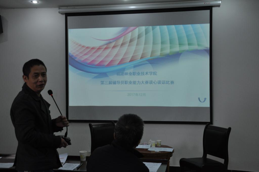 12月29日上午,学生处组织开展的第三届辅导员职业能力大赛“谈心谈话技巧”赛项在江南校区举行。学生处副处长李霞、艺术设计系党总支书记成榕、林学系党总支书记吴奇镇、建设工程系党总支书记王云彪、自动化工程系党总支副书记范有福、园林系党总支副书记陈剑勇到场观看比赛并担任评委,全院专职辅导员参加了本次大赛,青年教工团支部杨峰老师担任主持人。