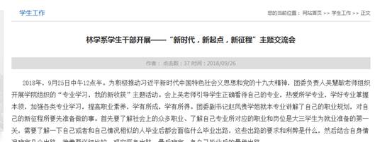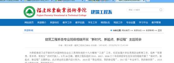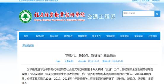 主题班会的开展离不开好的宣传,为扩大主题班会影响力,经济管理系、建筑工程系、林学系、交通工程系等利用学院、系部网站、微信微博等媒体平台宣传本次主题教育活动,营造学习氛围,扩大影响,引发思考。
