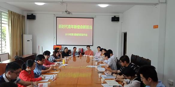 2019年5月,正值“五四运动”一百周年之际,为学习贯彻习近平总书记在纪念“五四运动”100周年大会上的讲话精神,更好传承“五四运动”精髓,做好思想政治工作。5月29日,本年度第三期辅导员读书会在天麟校区经管楼408召开。本次读书会围绕“新时代青年新使命新担当”主题展开,经济管理系党总支书记谢福荣、学生处副处长陈友益、学生处汪秀霞、各系学生科科长以及全体专职辅导员参加本次活动。经济管理系学生科科长王昉主持。