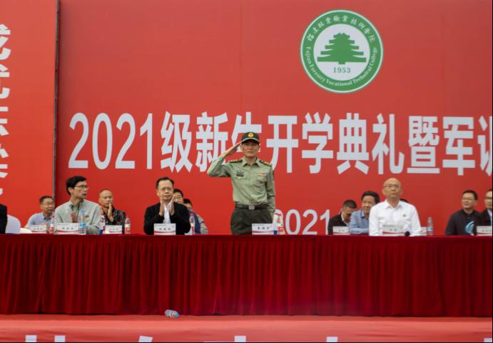 院党政领导,延平区委常委、武装部政委李武杰,延平区武装部副部长胡启武,延平区武装部和夏道镇武装部有关领导,学院各相关部门负责人,各系党总支书记、系主任、学生科长、2021级新生辅导员和2021级全体新生出席2021级新生开学典礼暨军训开训式。
