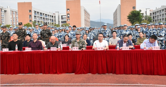 出席比赛现场的嘉宾有,学院党委副书记、院长刘文开教授,院学工部部长蔡敏教授,院团委副书记(主持工作)、学工部副部长陈友益。延平区夏道镇武装部部长祖铭和各系党总支书记担任本次比赛的评委。各系学工人员、全体承训教官及大一新生观看比赛。