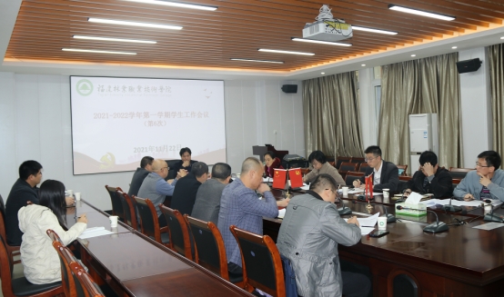 11月22日,我院2021-2022学年第一学期第六次学生工作会议在江南校区办公楼五层会议室召开。院党委副书记严绍裕出席会议。学生工作部、安全保卫处、院团委负责人,各系党总支书记参加会议。会议由学生工作部部长蔡敏主持。