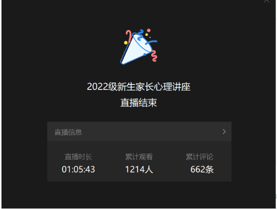 2022年9月9日晚19:30福建林业职业技术学院心理辅导教师陈红英为新生家长带来“孩子上大学 家长可以做什么”心理讲座,新生家长同时段观看了此次讲座。
