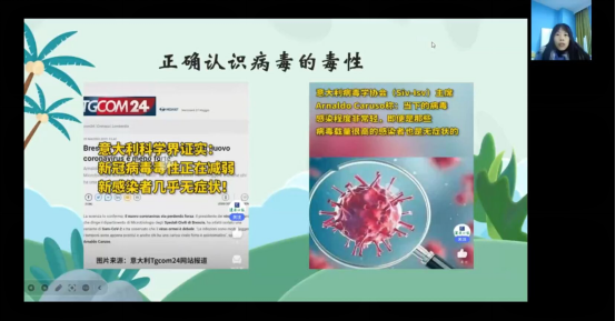 通过本次讲座,同学们正确认识了新冠病毒,掌握调节情绪的具体方法。让同学们以积极的心态面对新形势,做好自身健康第一责任人。