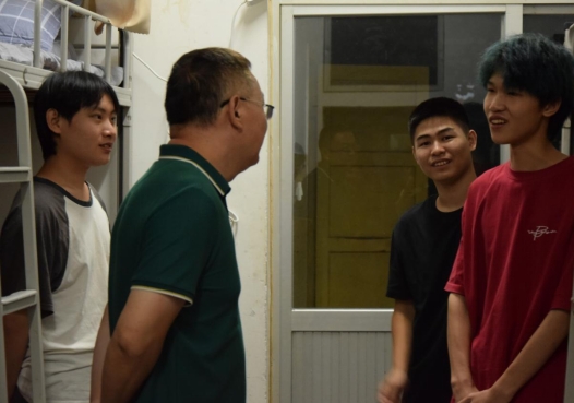 为进一步了解新生的入校状况,加强师生交流,切实解决学生所遇到的实际问题,9月8日晚7点,我院学工部部长蔡敏、建筑工程系党总支书记魏长专、系主任彭忠伟、系副主任张李平、专职组织员叶新颖、系教务科科长廖坤阳、系学生科科长兼团总支书记刘克芹及新生辅导员共同前往新生宿舍看望新同学。