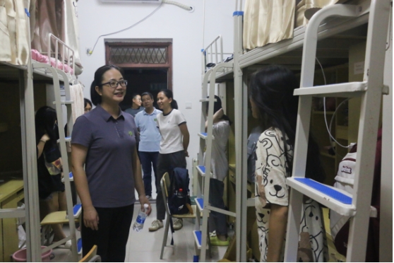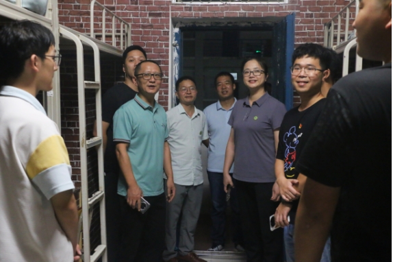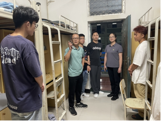 9月8日晚,系党总支书记陈莉、主任孙华、副主任李林威、学生科长兼团总支书记李建文、教务科科长陈毅勇、专职组织员黄雪媛及新生辅导员一同走访学生宿舍。各位领导老师实地了解学生需求,仔细查看寝室通水、通电、通风情况,要求同学们充分利用学校良好的体育设施,加强体育锻炼,保持健康的体魄和良好的精神状态,合理安排作息时间,健康生活;同时鼓励同学们珍惜大学时光,用心规划大学生涯,勤学好问,积极奋进,争做新时代好青年。