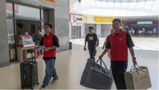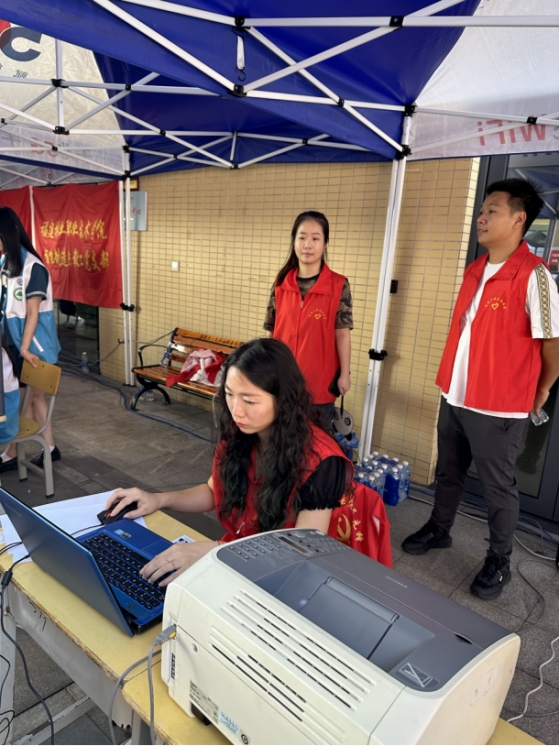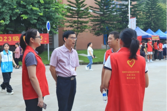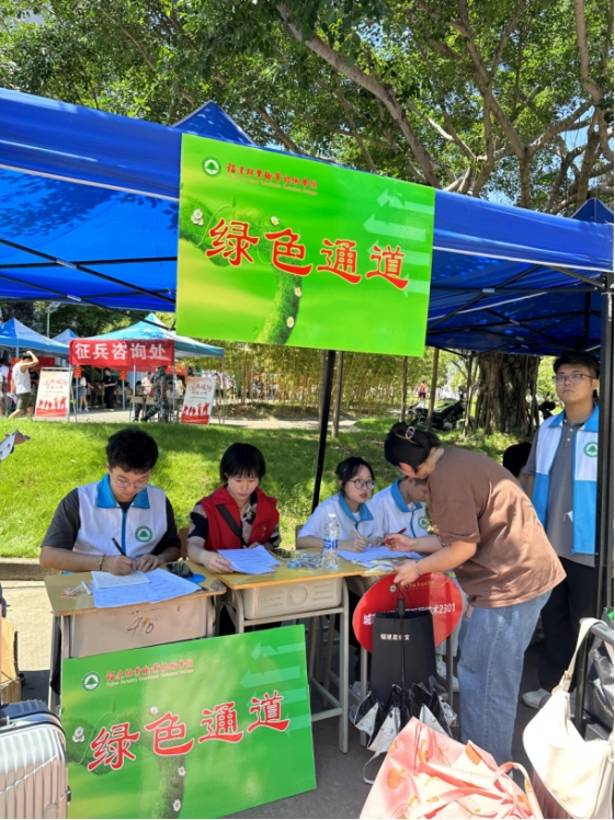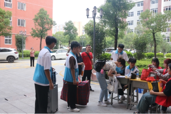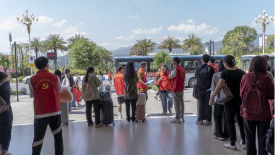 系党总支组织党员先锋岗在延平站设立服务点,有序接待八方学子,教师党员和学生志愿者“点对点”接待,指引2023级新生有序搭乘校车,并提供“面对面”贴心服务,帮忙搬运物品行李上车入校。