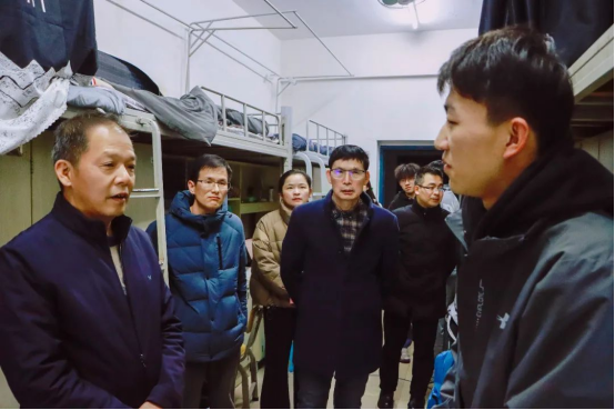 12月20日至21日,院党委书记万泉、院长刘文开、院党委副书记严绍裕、副院长谢金生及学生工作部、信息工程系、智能制造系相关人员一行深入学生宿舍,把学院的慰问和关怀送到受灾学生的心坎上。“现在生活上有什么困难?”“家里受灾情况如何?”在学生宿舍,万泉书记、刘文开院长一行详细了解受灾地区学生的家庭受灾情况、家庭经济现状和在校学习情况,鼓励受灾学生要树立信心、战胜困难,安心在校学习,不负青春韶华,继续努力奋斗,将来更好地建设家乡、回馈社会。