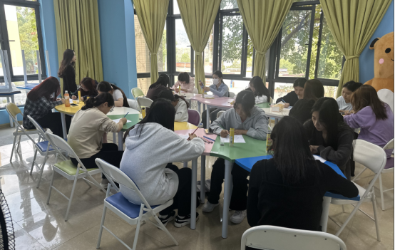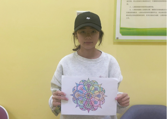 本次活动轻松有趣,在老师的引导下,同学们在曼陀罗图案的画纸上进行填色,意在正念静心。通过色彩和绘画,让同学们在心灵、情感上对负能量进行释放,起到解压、宣泄情绪和调整情绪的作用。