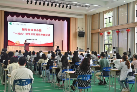为加强学院学生工作队伍建设,推进“一站式”学生社区管理服务提质增效,2024年4月19日,由经济管理系承办的辅导员读书会暨“一站式”学生社区建设专题研讨在天麟校区礼堂举行。院党委副书记严绍裕,院学生工作部部长陈友益,院安全保卫处处长胡宗焕,院团委副书记(主持工作)雷栩艺,经济管理系主任林文胜,经济管理系党总支副书记(主持工作)王昉,院学生工作部副部长陈红英,各系学生科长及全体专职辅导员80余人参加了读书会。本次读书会由经济管理系专职组织员张翼翔主持。