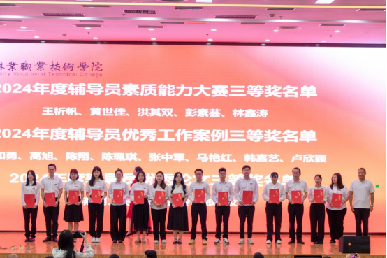 随后,进行颁奖表彰环节。学院对在2024年度辅导员素质能力大赛、辅导员优秀工作案例及辅导员优秀论文评选中获奖的经济管理系胡斌、交通工程系张铭、交通工程系林秀琴等32名辅导员进行了颁奖表彰。通过表彰,激励广大辅导员不断提升自身素质和业务能力,积极探索创新学生工作方法和路径,为学院学生工作高质量发展贡献力量。