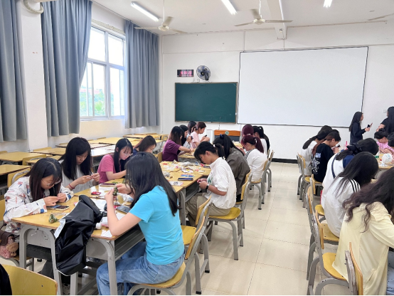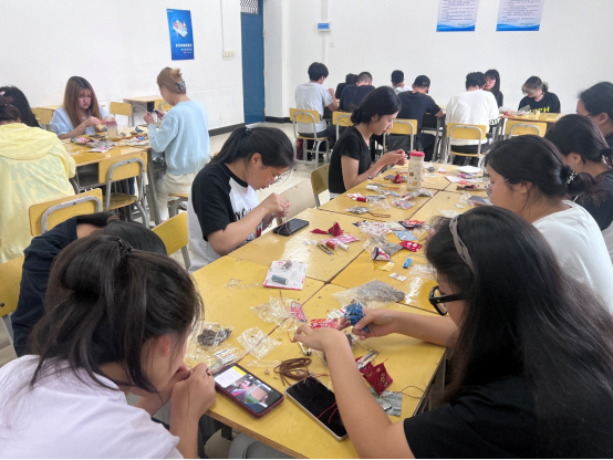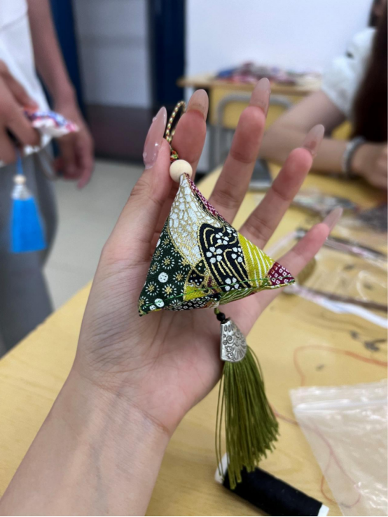 活动现场同学们积极参与,充满青春气息与文化韵味。工作人员深入讲解了端午节的历史渊源、民俗活动,还结合香囊制作工艺,探讨了传统手工艺在现代社会的传承与创新。香囊制作实践环节正式开始后同学们分组协作,设计出新颖的香囊造型,感受着中国传统文化的魅力。经过近三个小时的精心制作,一个个精美的香囊呈现在众人眼前。