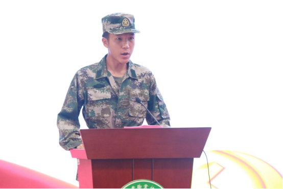 ▲教官代表范鸿彬汇报了军训团集训备训情况