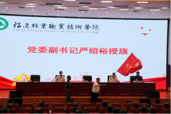 在庄严的授旗仪式上,党委副书记严绍裕向军训团庄重授旗。标志着军训工作正式启动,激励着全体教官以更加昂扬的斗志和坚定的信念投入到接下来的军训任务中。