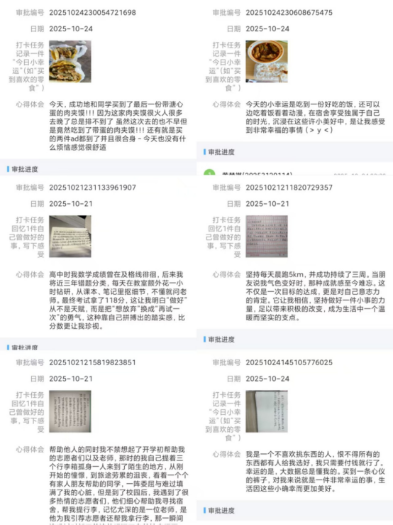 此次“秋暖十月,爱己润心”打卡活动,不仅有效提升了同学们的情绪管理能力和心理韧性,更让“爱自己”成为一种可操作、可分享的健康生活习惯,为构建和谐校园注入了“心”能量。