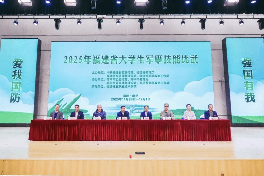 2025年11月29日上午,由中共福建省委宣传部、省教育厅、省军区战备建设局、省军区政治工作局联合主办,福建林业职业技术学院承办的“2025年福建省大学生军事技能比武”活动在福建林业职业技术学院江南校区体育馆隆重开幕。来自全省72所高校的576名参赛选手齐聚闽北,整装待发,共同迎接这场军事素养与青春风采的盛会。