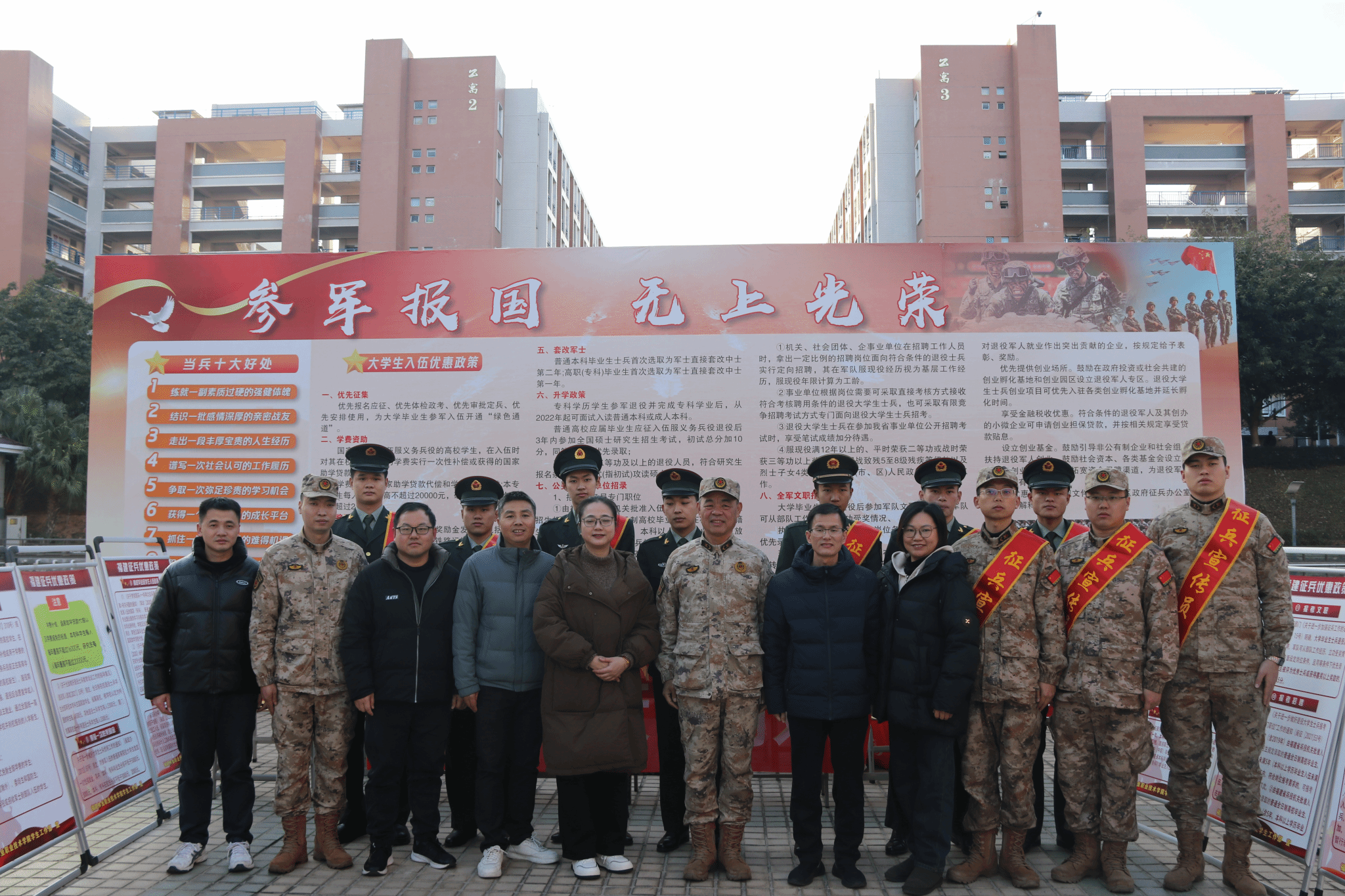 此次活动是校地深化协同治理的生动实践,更是高校落实“立德树人”根本任务与“稳就业”政治责任的具体行动。通过党建引领打破部门壁垒,将征兵工作融入毕业生就业服务全链条,既响应了国家“鼓励大学生参军入伍”的号召,为实现建军一百年奋斗目标注入青春力量,也为毕业生破解就业焦虑、拓宽发展空间提供了有效路径,彰显了高校服务国家战略、赋能青年成长的责任担当。