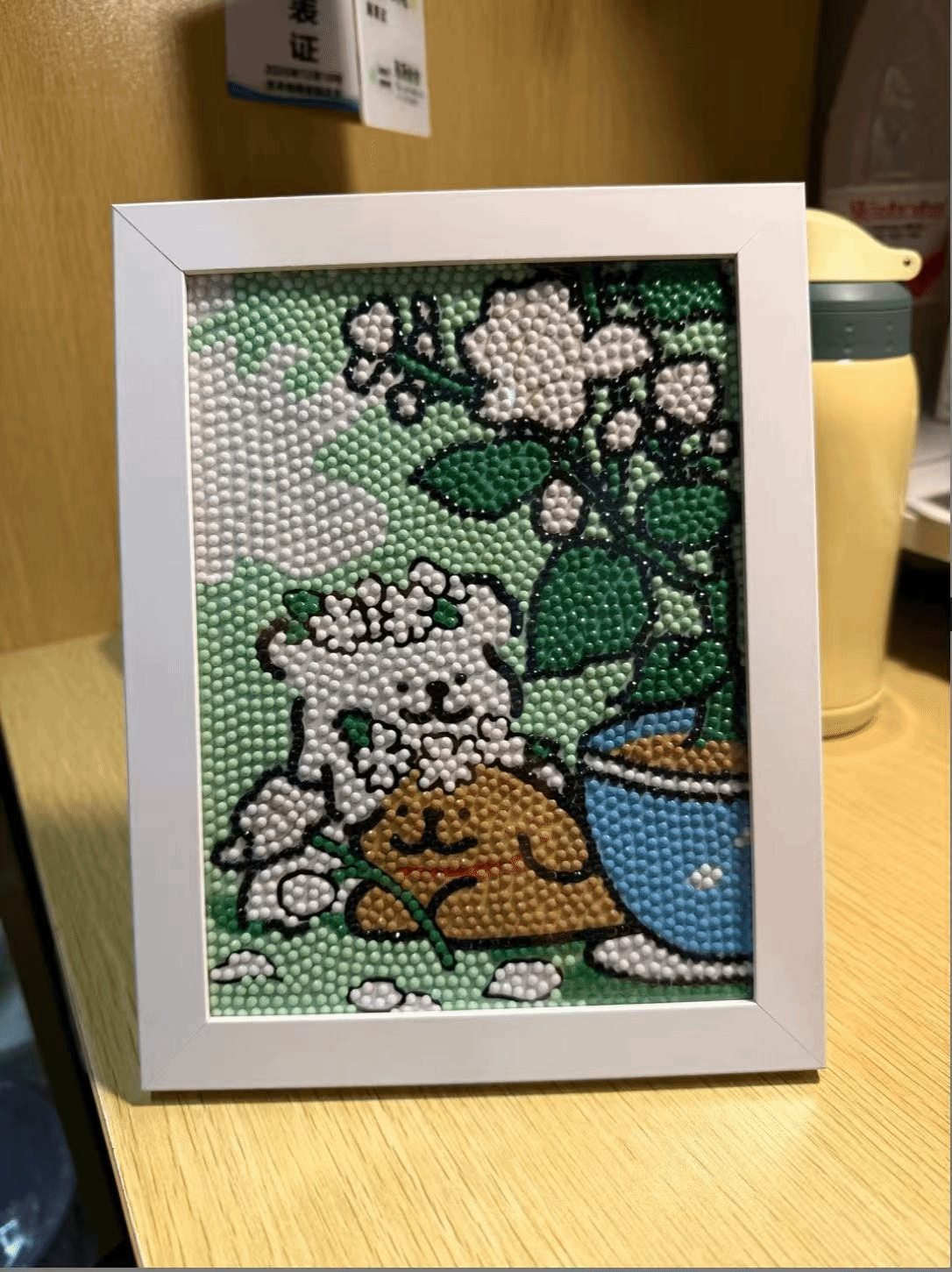 活动现场准备了多款主题图案,同学们沉浸其中,在点钻中释放学业压力;也能与伙伴并肩,边做手工边畅聊心事,结识志同道合的朋友。完成的钻石画不仅是独一无二的纪念,更是装点书桌、馈赠好友的绝佳礼物。