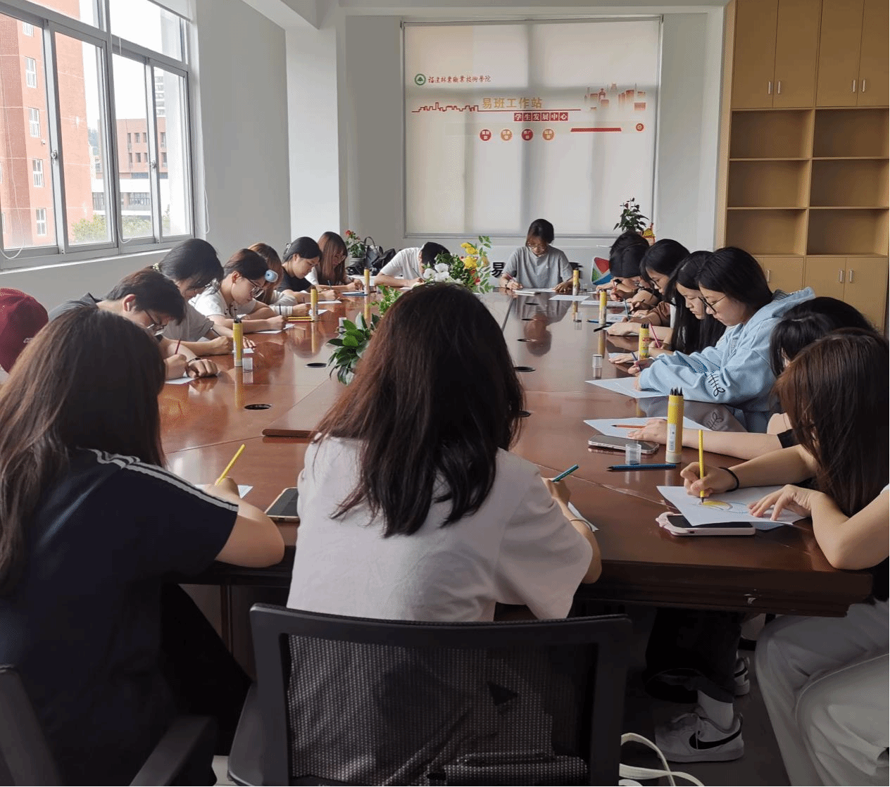 曼陀罗绘画作为表达性艺术疗法的重要载体,不仅是一种兼具审美价值与精神内涵的艺术表达形式,更是一种贴合学生成长需求、赋能心理育人的重要路径。为深入推进温暖集体建设,充分发挥心理疗愈在一站式学生社区“暖心育人”中的重要作用,2026年4月14日学生工作部联合建筑工程系和交通工程系在一站式学生社区易班工作站开展“曼陀罗绘画”团体心理辅导,本次活动由专职心理老师连双玲带领,建筑工程系和交通工程系20位同学积极参与。