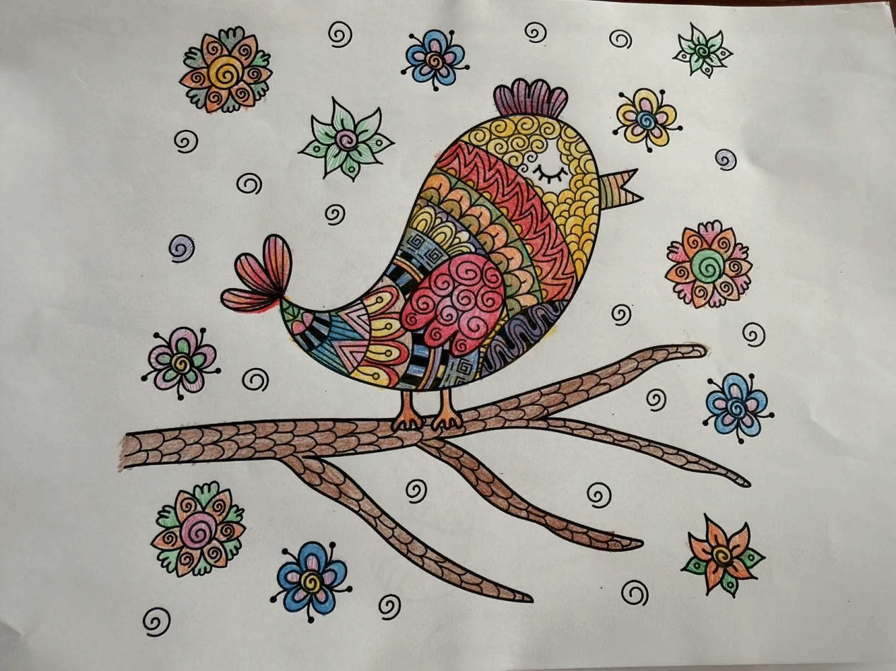 本次活动轻松有趣,在老师的引导下,同学们在曼陀罗图案的画纸上进行填色,意在正念静心。通过色彩和绘画,让同学们在心灵、情感上对负能量进行释放,在一笔一划中与自己连接,起到解压疗愈的作用。