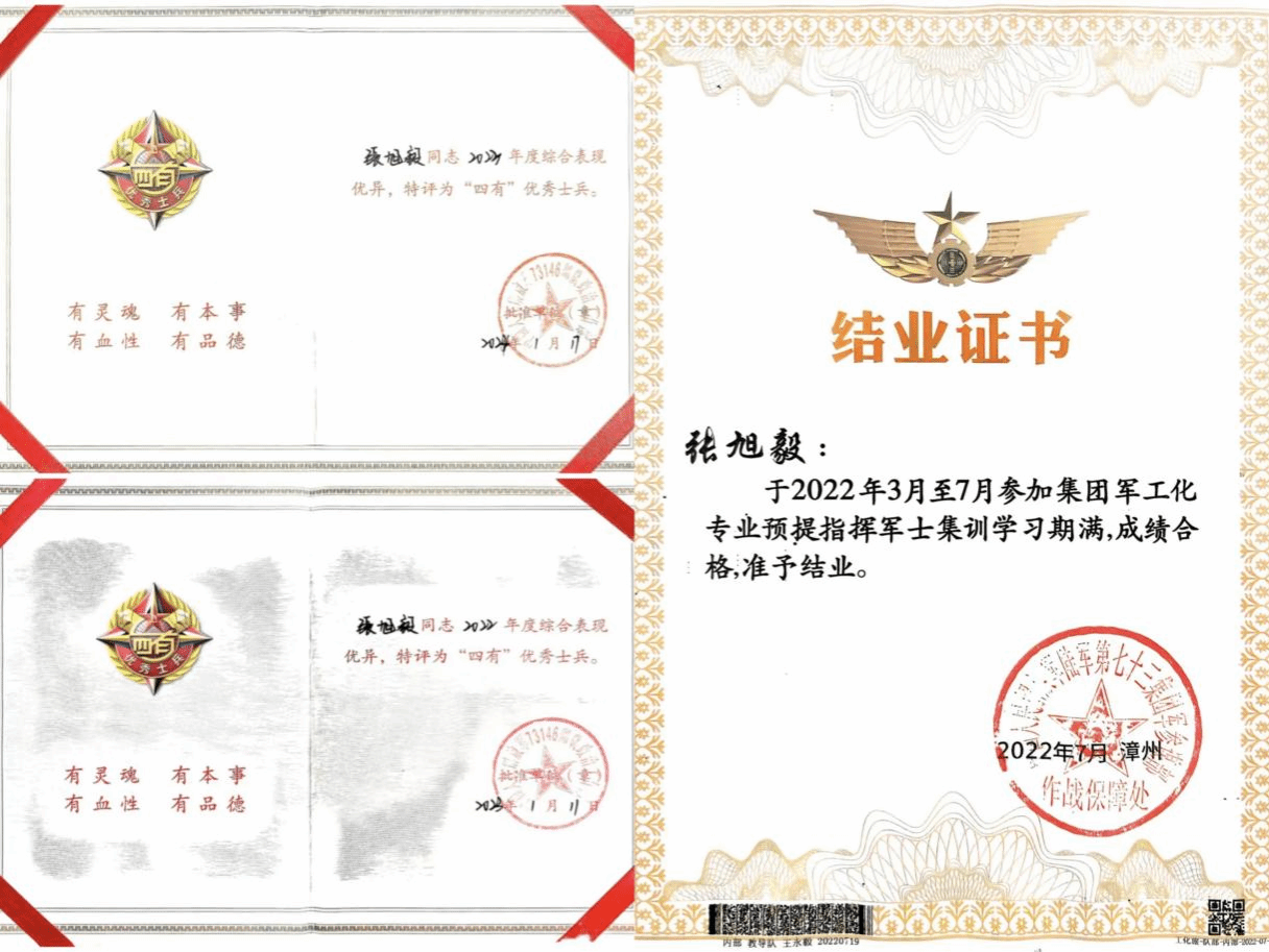 “武艺练不精,不算合格兵。”这句话自下连起便被他牢记于心。无论是烈日下的战术训练,还是深夜里的理论背记,他始终冲在最前、练得最实。凭借过硬的思想政治素质、扎实的军事专业技能、顽强的战斗作风与高尚的道德品行,2024年他被评为“四有”优秀士兵。“四有”即有灵魂、有本事、有血性、有品德,是部队对现役士兵在思想政治、军事素质、作风纪律等方面综合表现的最高荣誉评定,也是对他军旅生涯的最大肯定。在部队里,他也凭借优秀的表现荣获了“三等功”。这段经历让他眼神更坚毅、身姿更挺拔,更将“忠诚、担当、奉献”的军人底色深深烙印在心。