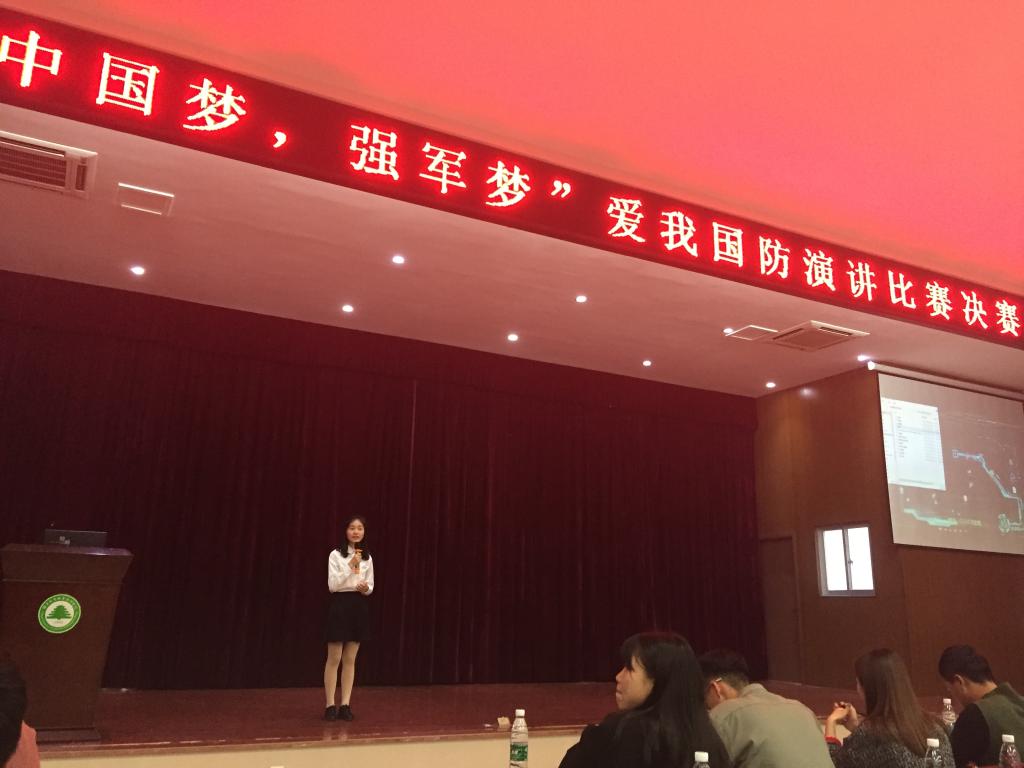 “中国梦,强军梦”爱我国防主题演讲比赛于9月开始组织系选拔赛,广大同学积极参与,最终有14名选手进入决赛。通过本次演讲比赛,选手们展现出了“政治思想强、作风表现好、爱党爱国爱军队”的优良品质。他们真挚的情感、澎湃的激情、深刻的思想、独到的见解激发了当代大学生关心支持国防和军队建设的热情。决赛采取评委现场打分、即时公布分数的形式进行。经过参赛选手的精彩演讲与激烈角逐,吴媛、梁亮福、黄炜炜(团队)荣获一等奖,方锽滨等2名同学获得二等奖,林俊鑫等3名同学获得三等奖。此外,还有林小倩等8名同学获得了优秀奖。