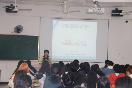 第一专题——心理委员工作实务。从心理委员设置的背景、大学生心理健康标准、心理委员具备的心理素质、心理委员工作内容以及心理委员月报表填写五个方面进行培训。本次培训讲座使各班心理委员进一步明确心理委员的职责和日常管理工作内容,同时普及相关心理知识,以及如何去解决同学们的心理问题和面对不同心理隐患时应当采取的不同心理援助。