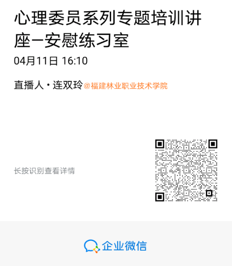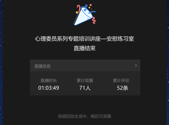 2023年4月11日下午,学生工作部心理老师连双玲为2021级心理委员开展线上专题培训讲座——安慰练习室。